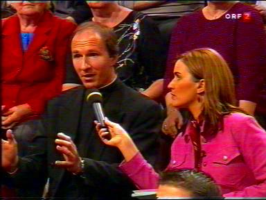 Als kirchlicher Fachmann war Padre Alex, der Militärseelsorger Dr. Alexander Pytlik, am 7. 2. 2001 zur heißen Diskussion geladen, unter dem offensiven Titel: "Ich bin schwul! Wo ist das Problem?" |